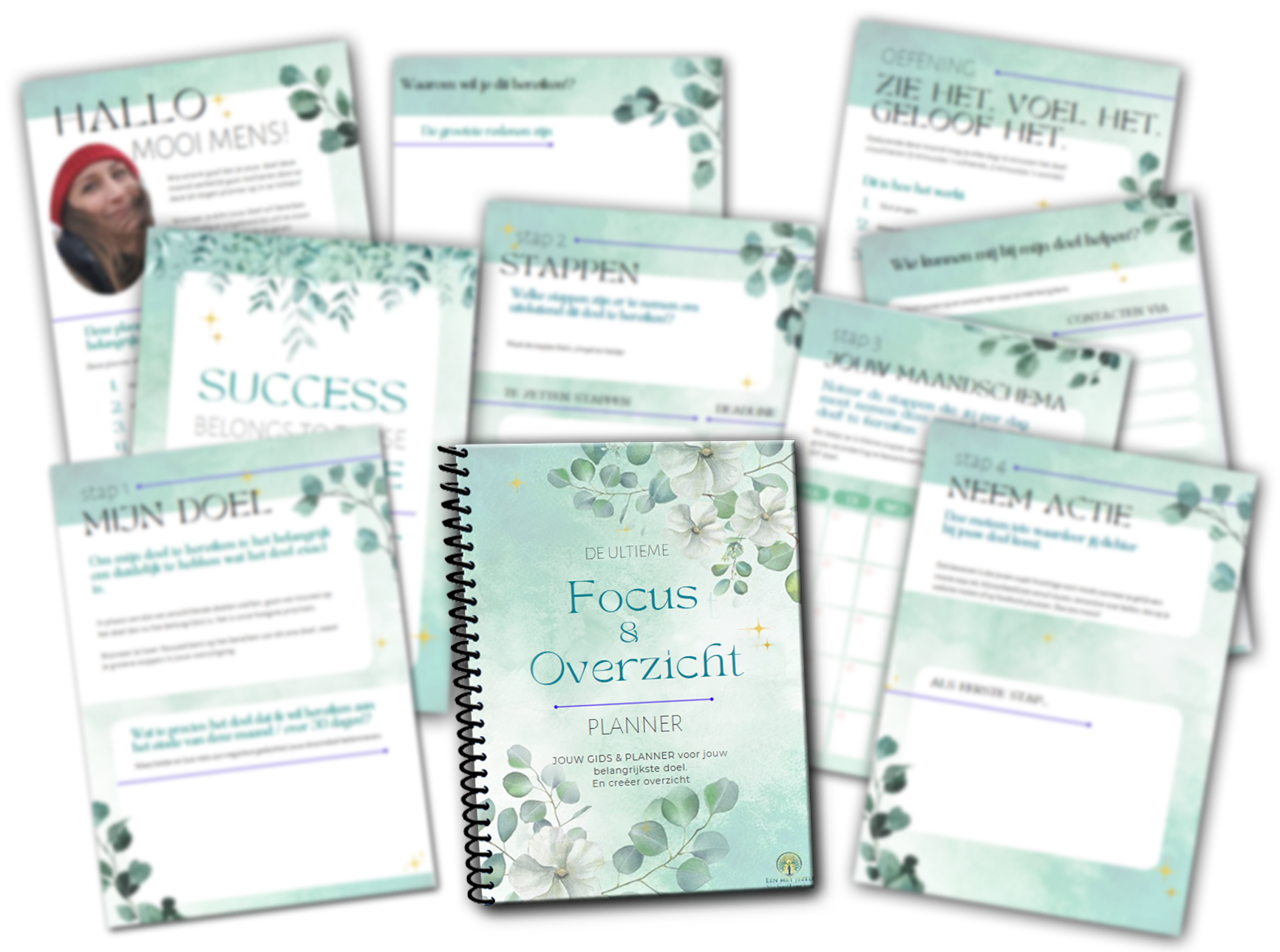 Een professioneel team heeft voor jou onderzoek gedaan naar wat het beste werkt voor mensen om zich goed te voelen, en heeft zich maanden gewijd aan het maken van verschillende werkboeken. Ik heb zelf deze onderdelen vormgegeven, gebundeld en er 2 doeltreffende werkboeken aan toegevoegd.