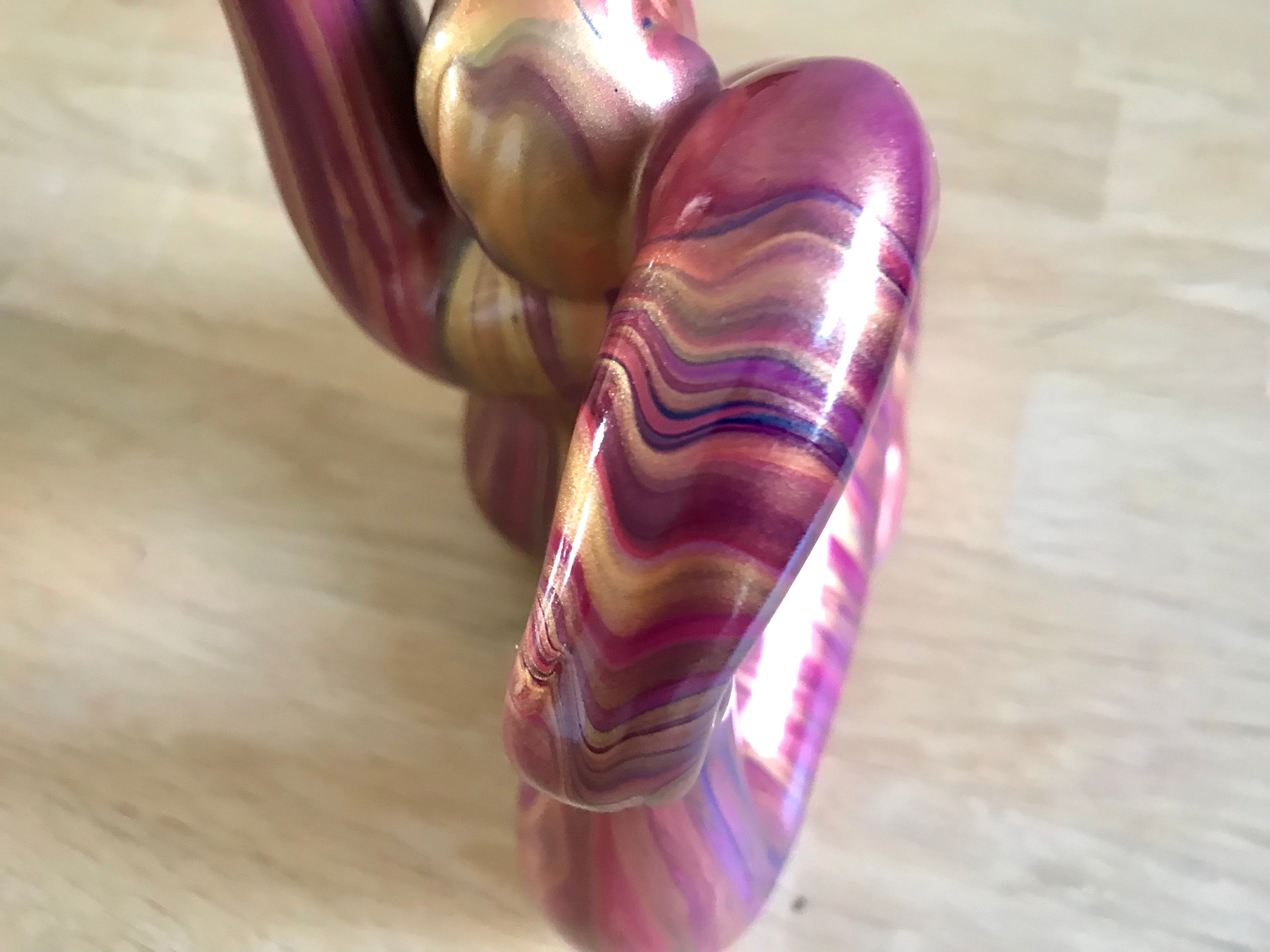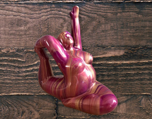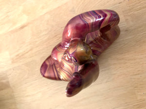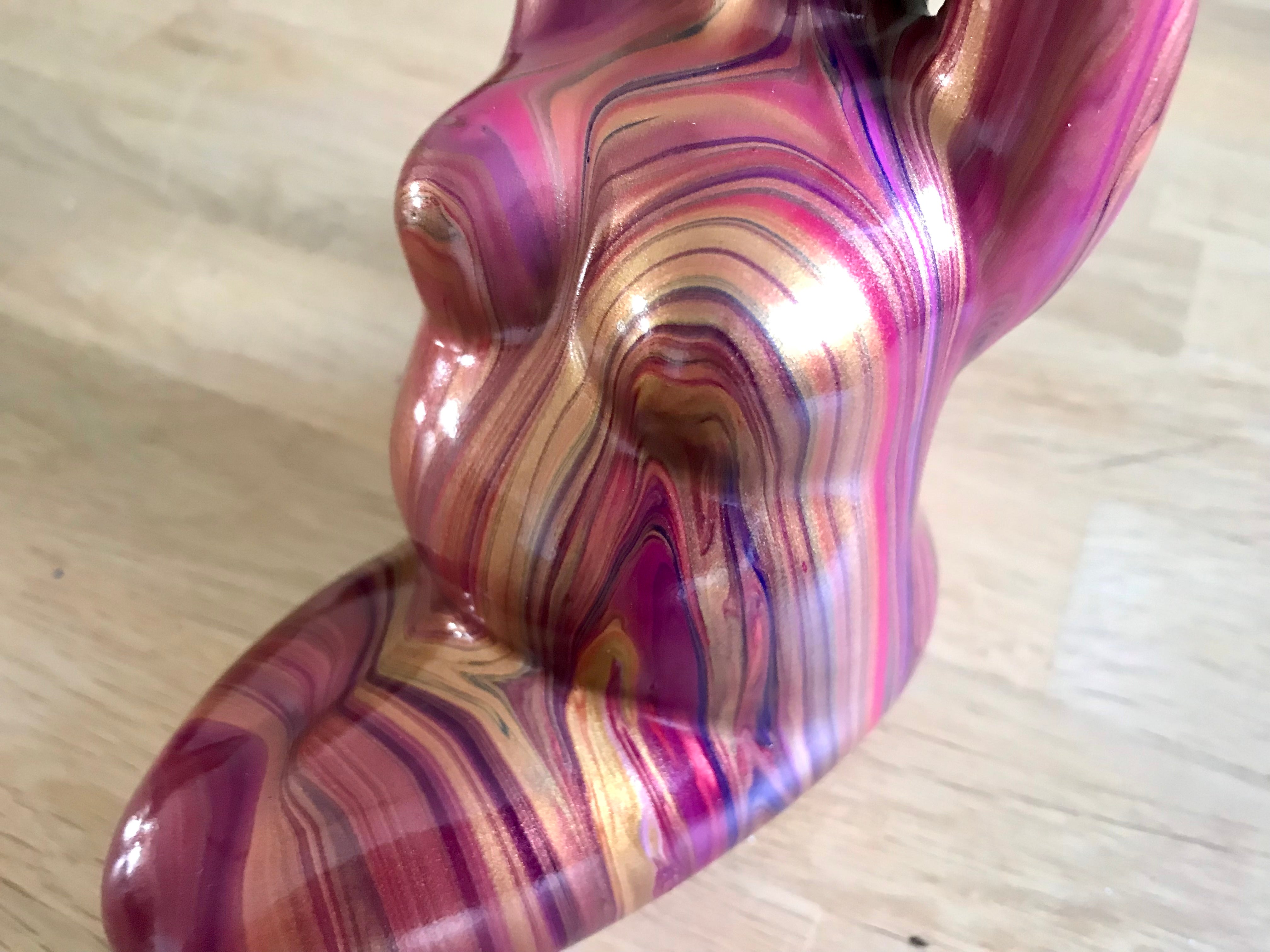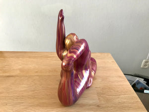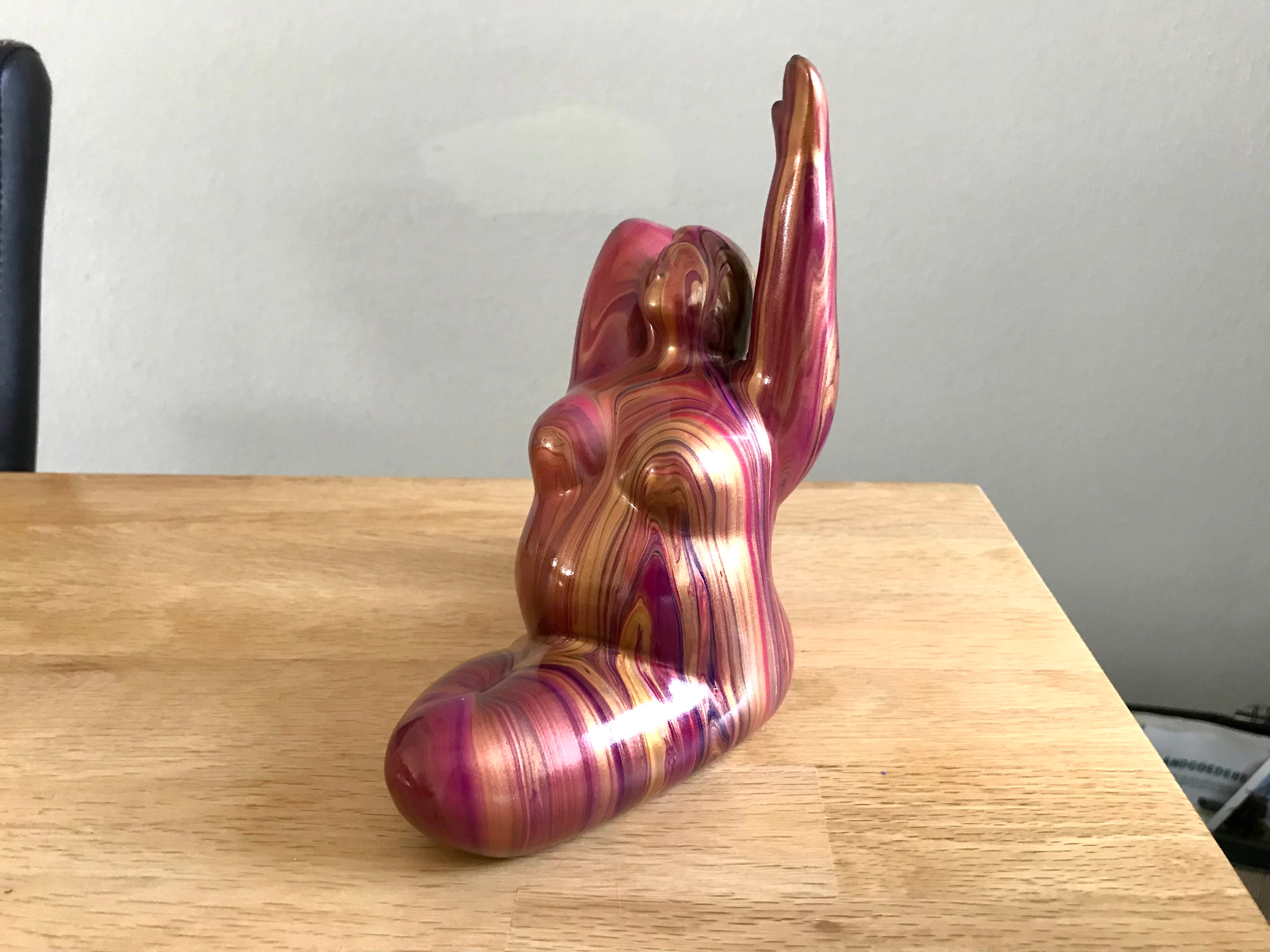 Overgoten beeldje van aardewerk, afgewerkt met een prachtige lak.