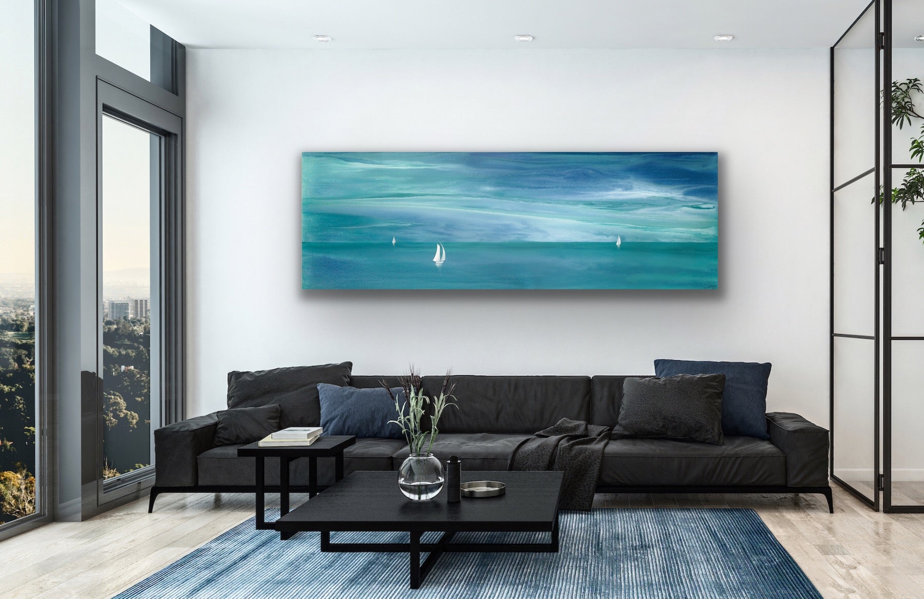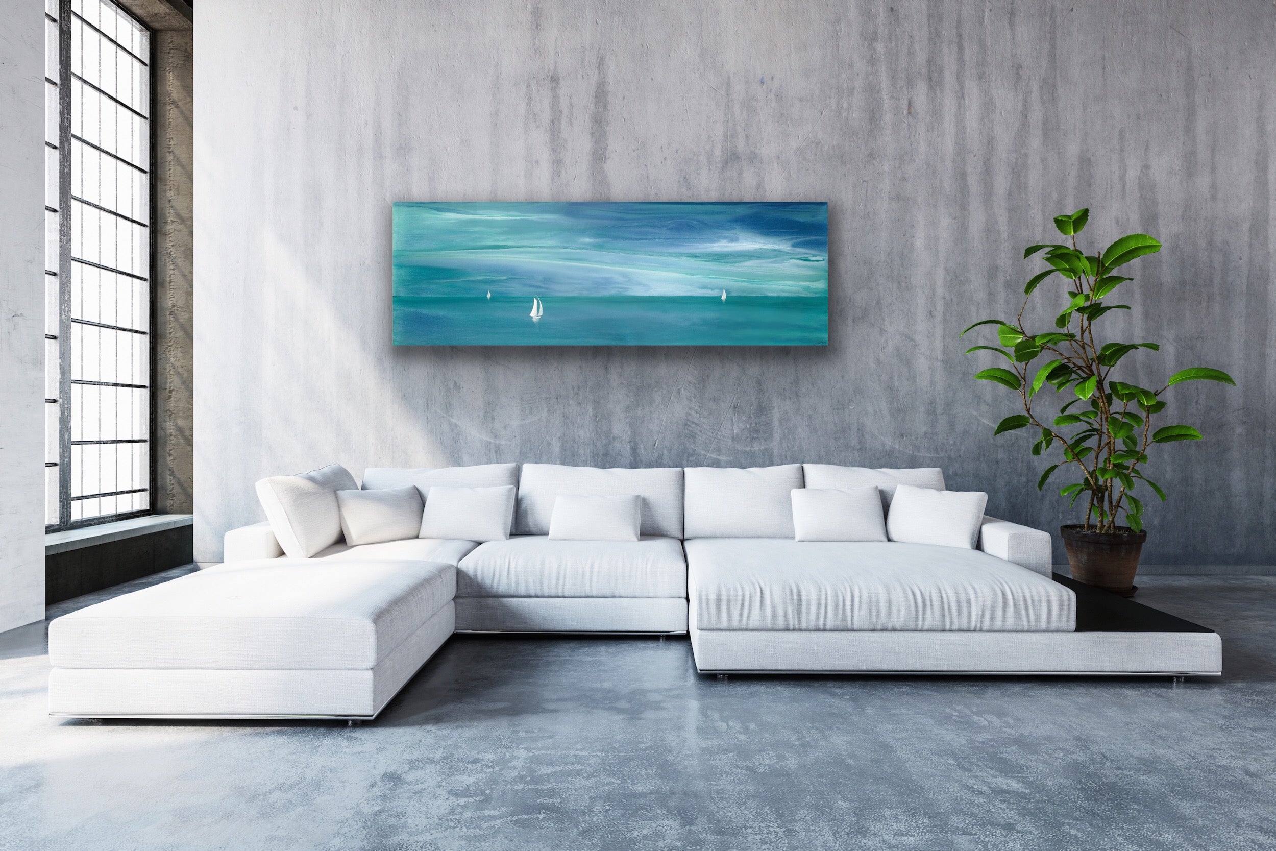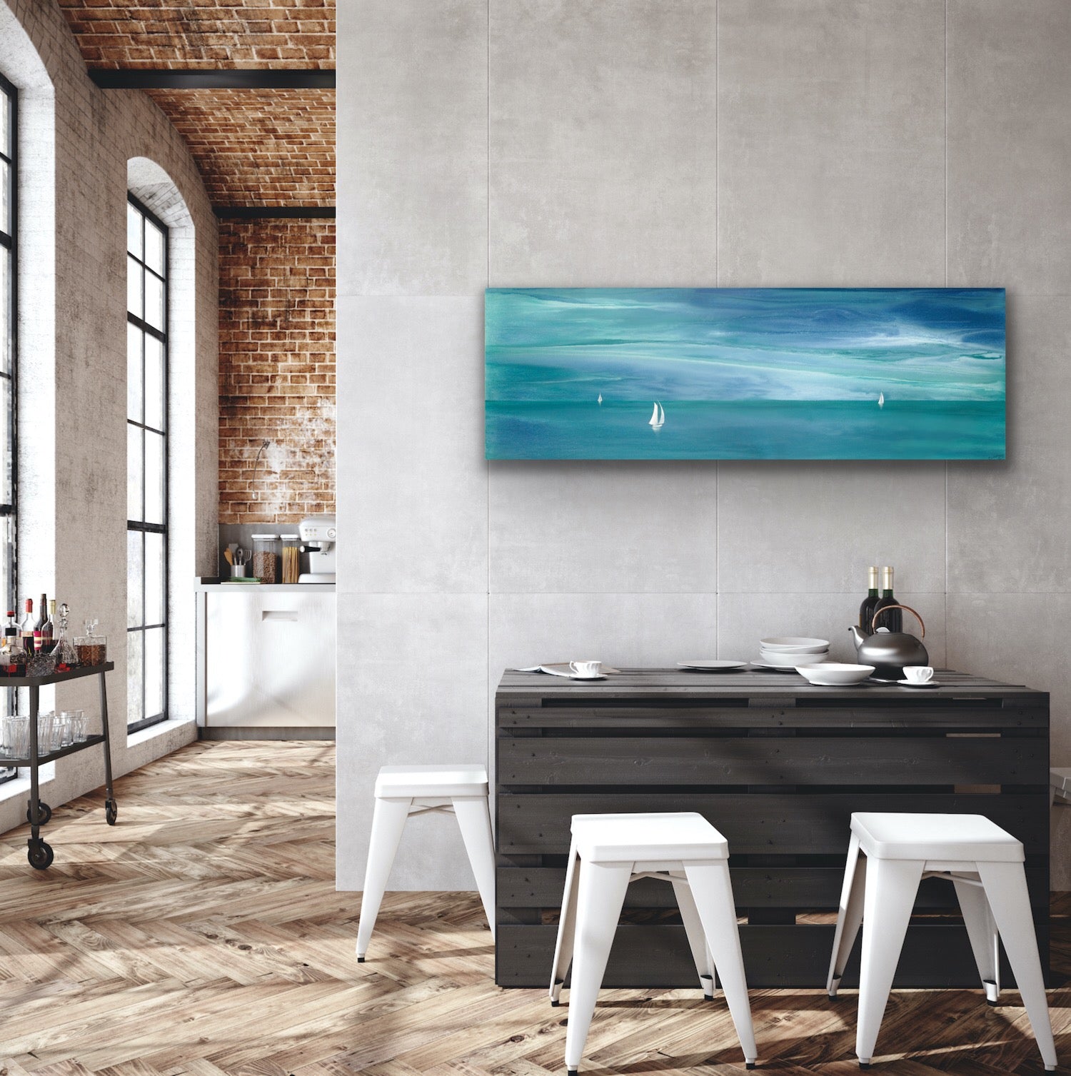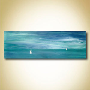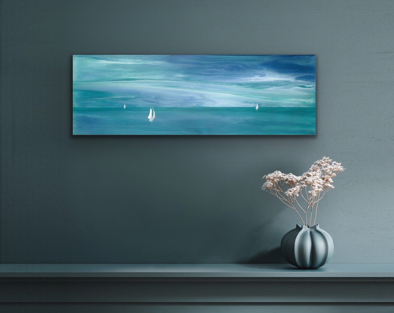 Foto van een schilderij op kwaliteits-canvas gedrukt, waar ik de bootjes nog op schilder.