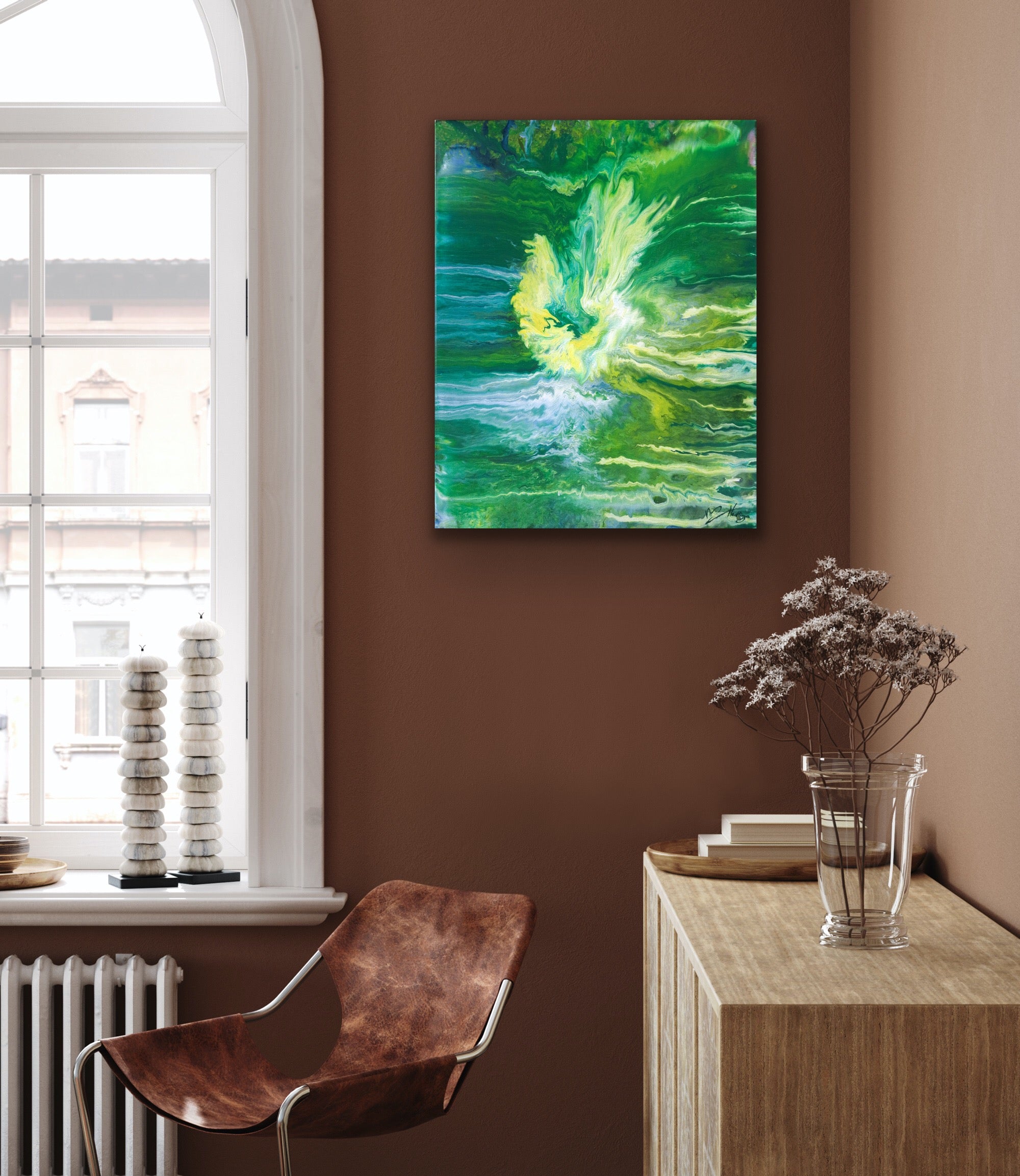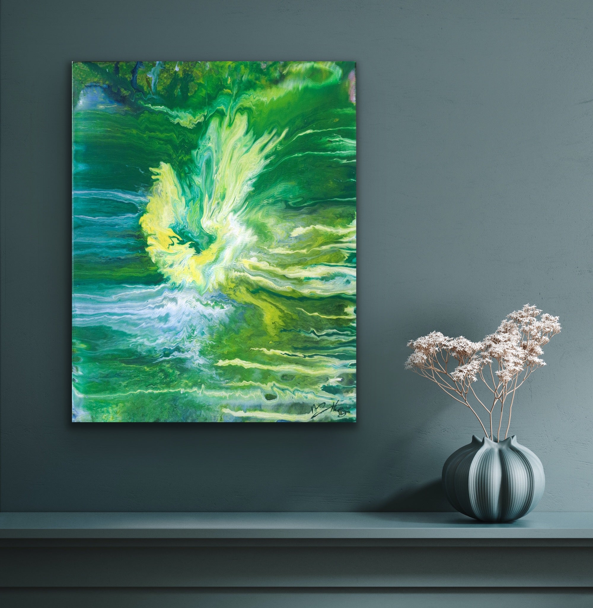 Origineel is Handgeschilderd & gesigneerd door kunstenares Marit Hettinga, met vloeibare Acrylverf