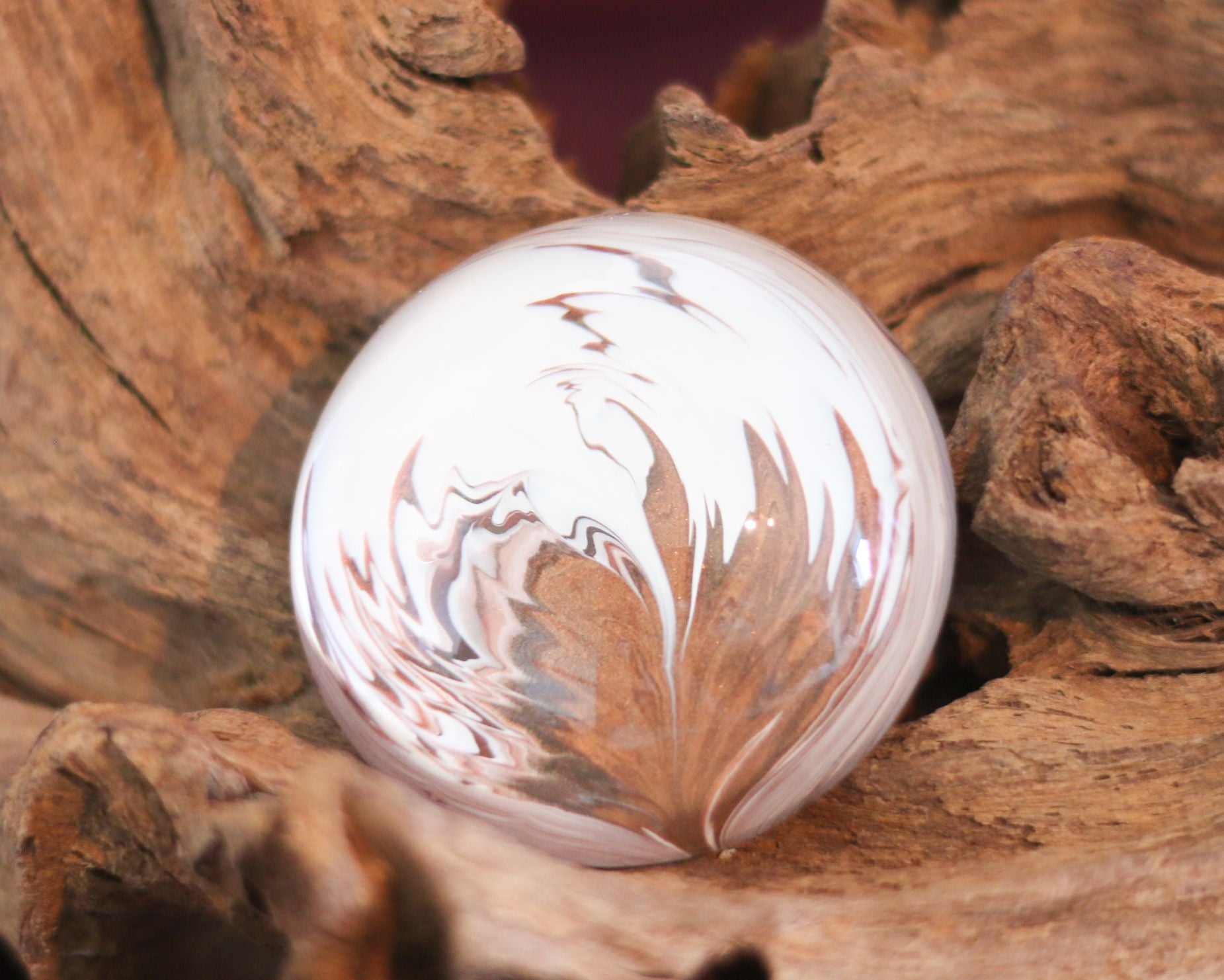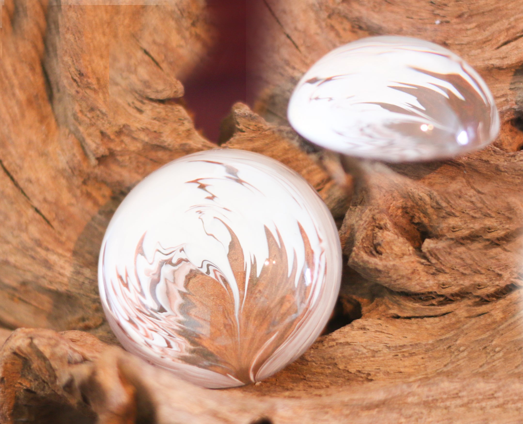 Speciaal voor jou gemaakt schilderwerkje, onder een Halfrond glaswerk. Hierdoor krijgt de schildering een bijzonder diepte effect. Mooi op je bureau of koffietafel.